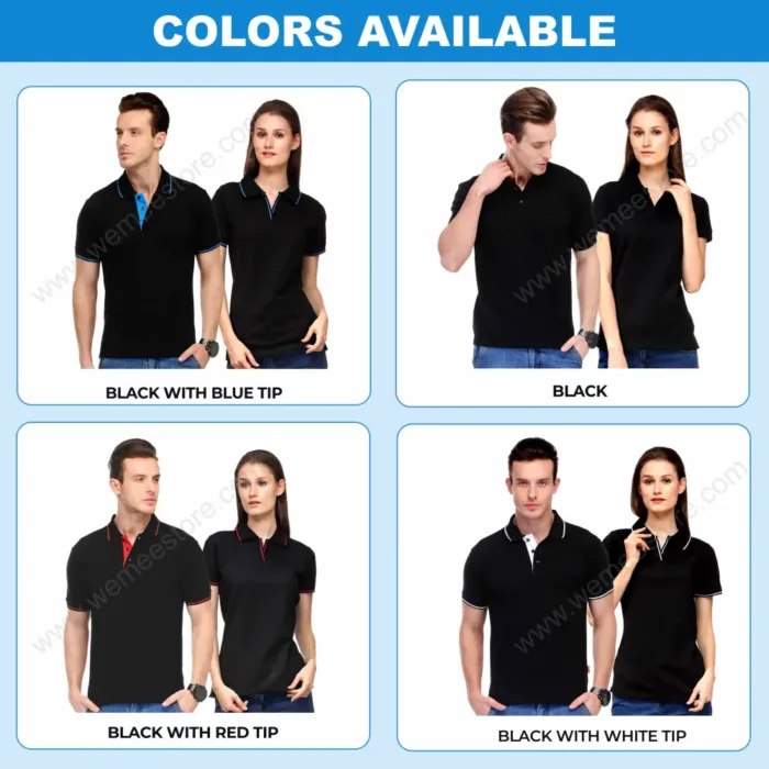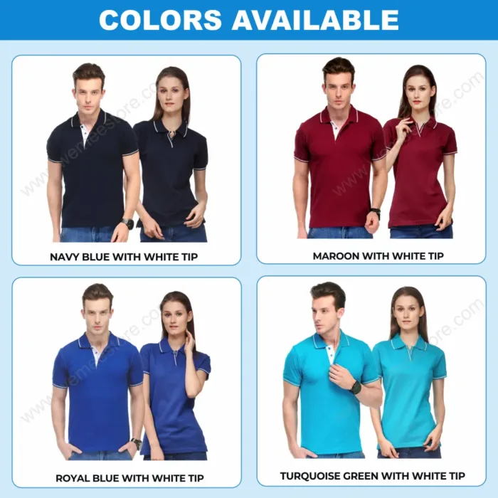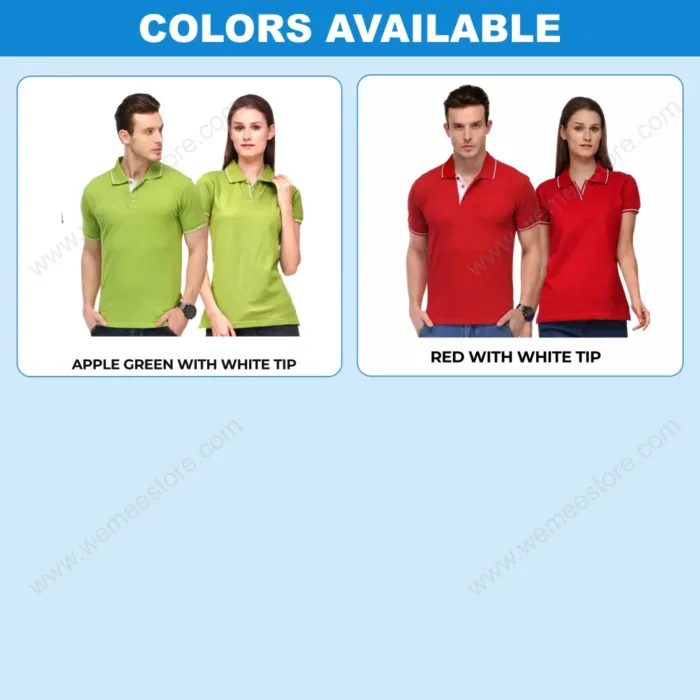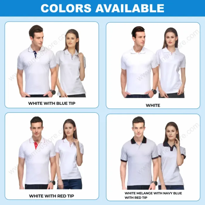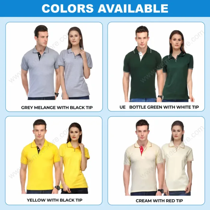 • For collar neck we have two types of  fabric available with us. Cotton & Drifit.